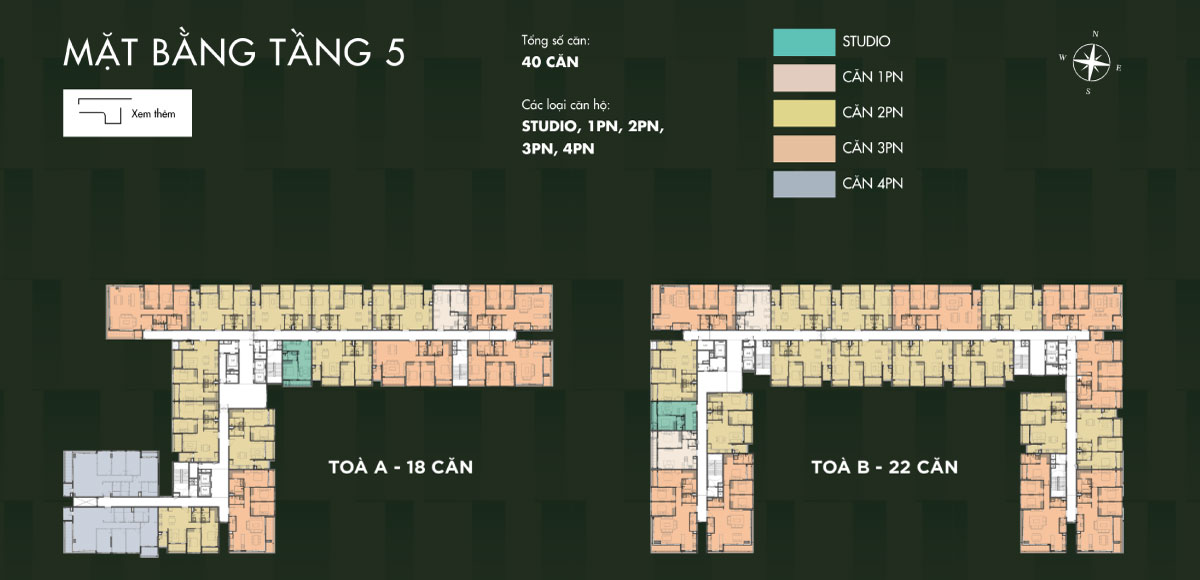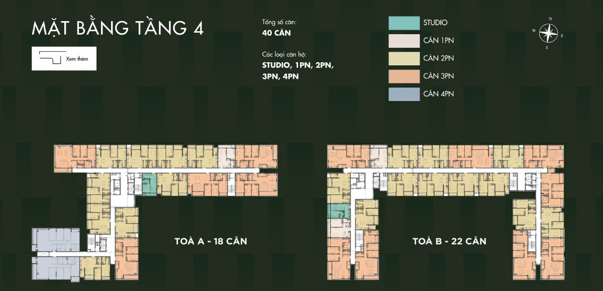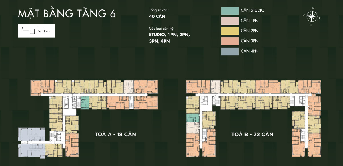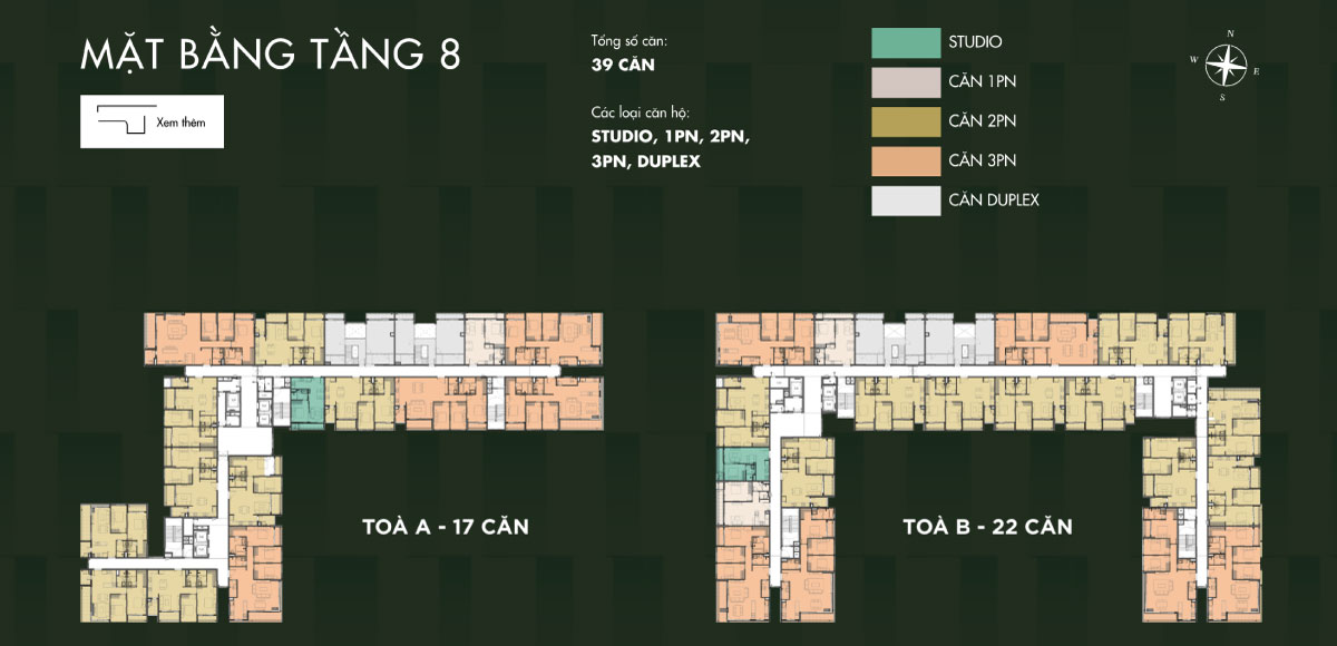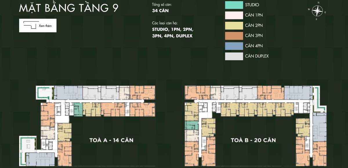 | Loại hình | Studio, 1PN, 2PN, 3PN, 4PN, Duplex, Townhouse, Penthouse, Shophouse |
